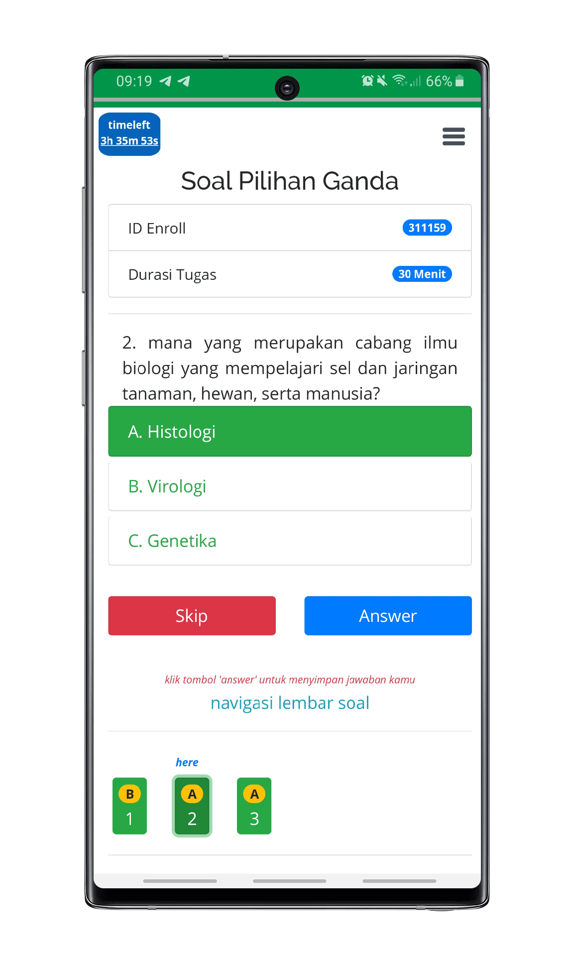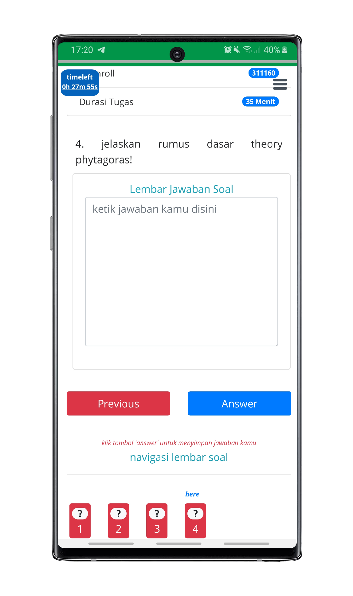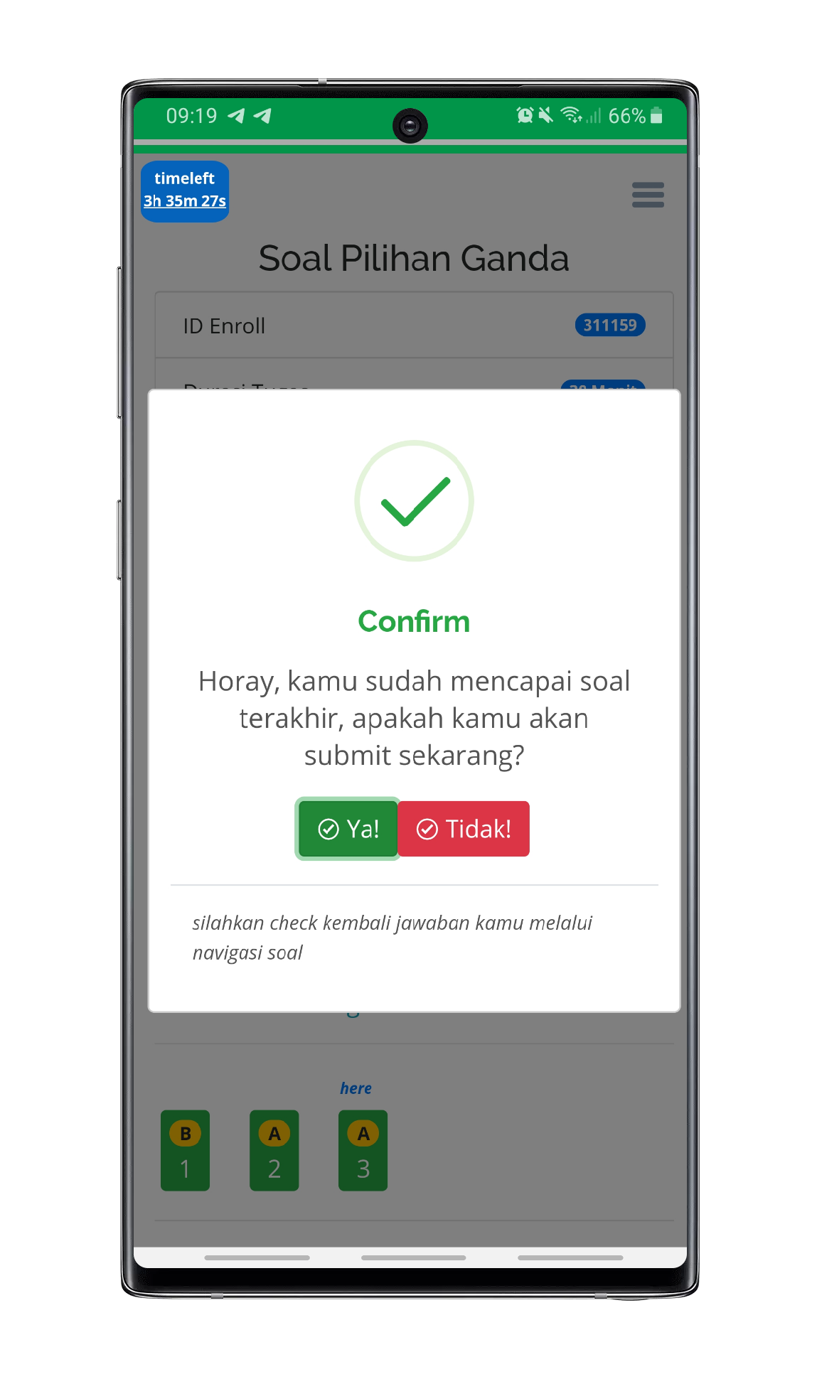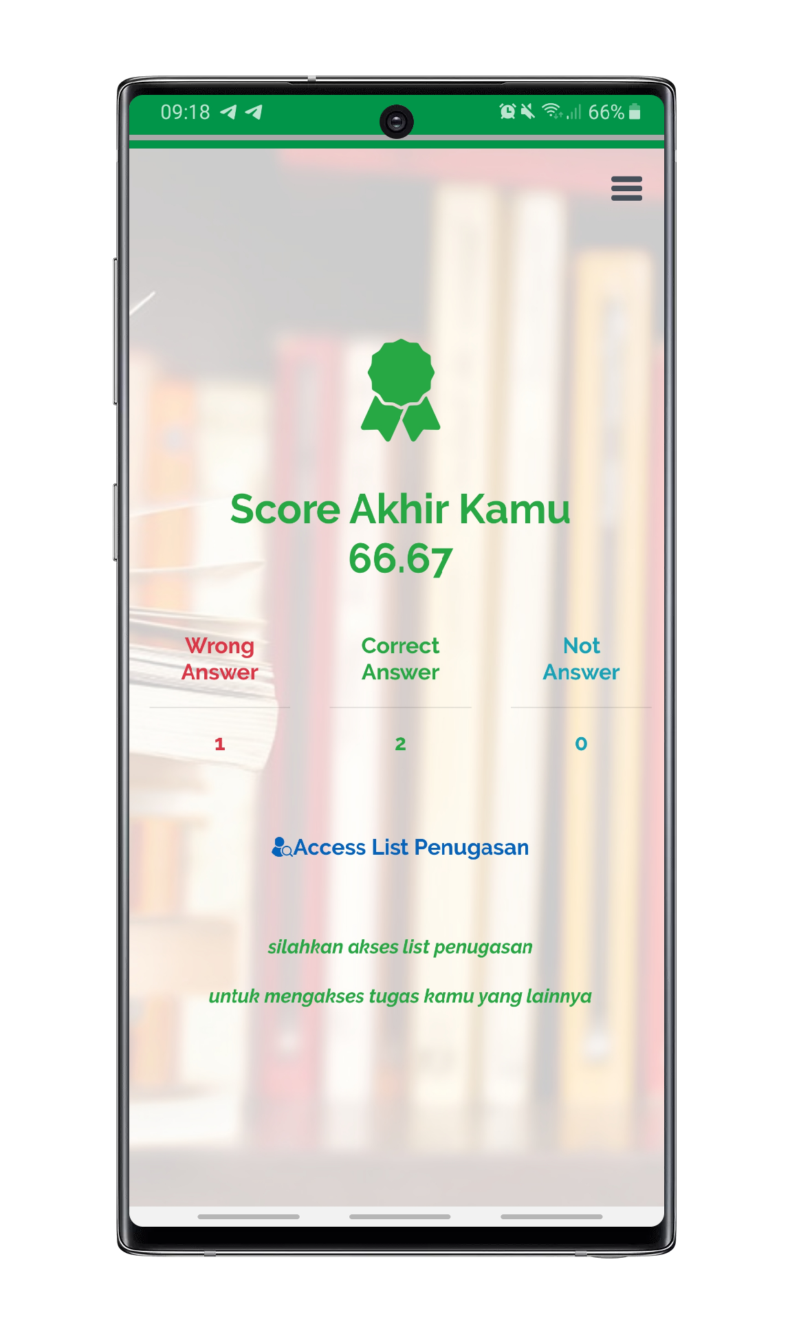 Untuk type soal Pilihan Ganda, system akan membantu guru dalam melakukan koreksi jawaban siswa.