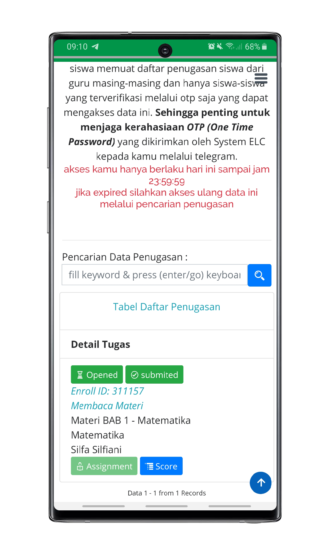 penugasan dapat dijadikan sebagai bahan absensi dan data penugasan bisa di integrasikan sesuai kebutuhan sekolah dan guru