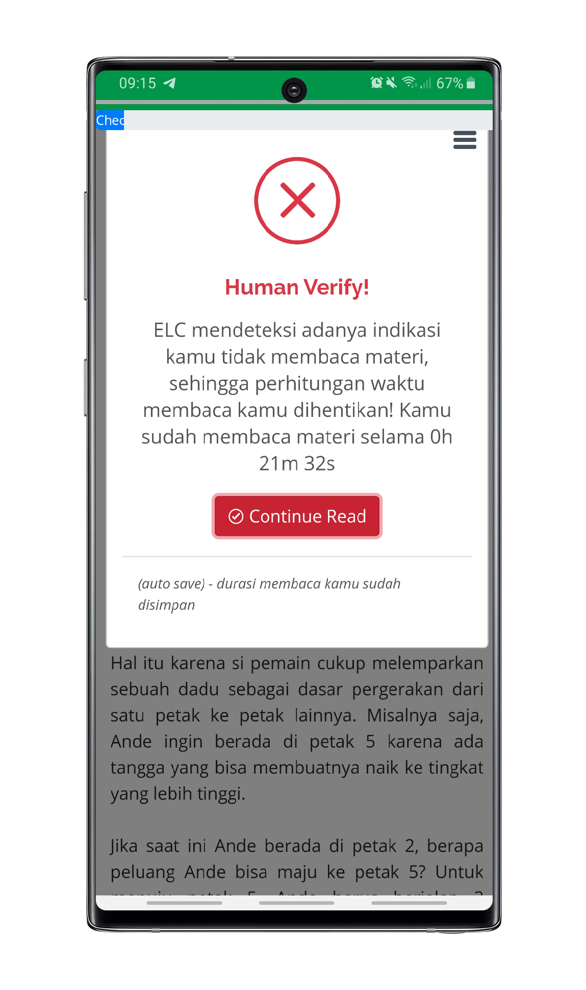 Lembar tugas membaca materi akan membantu guru melakukan pengawasan dengan ketat kepada tiap siswa yang melaksanakan tugas ini dan memastikan semaksimal mungkin siswa membaca dengan cara (membaca interasksi siswa terhadap lembar tugas, menghitung tiap detik apa yang siswa baca, memprediksi siswa meninggalkan lembar tugas dan mencatat berapa lama siswa membaca)